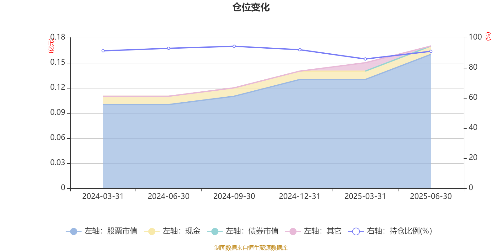 据定期报告数据统计,成立以来平均股票仓位为91.21%,同类平均为87.02%。2024年三季度末基金达到94.28%的最高仓位,2025年一季度末最低,为85.83%。