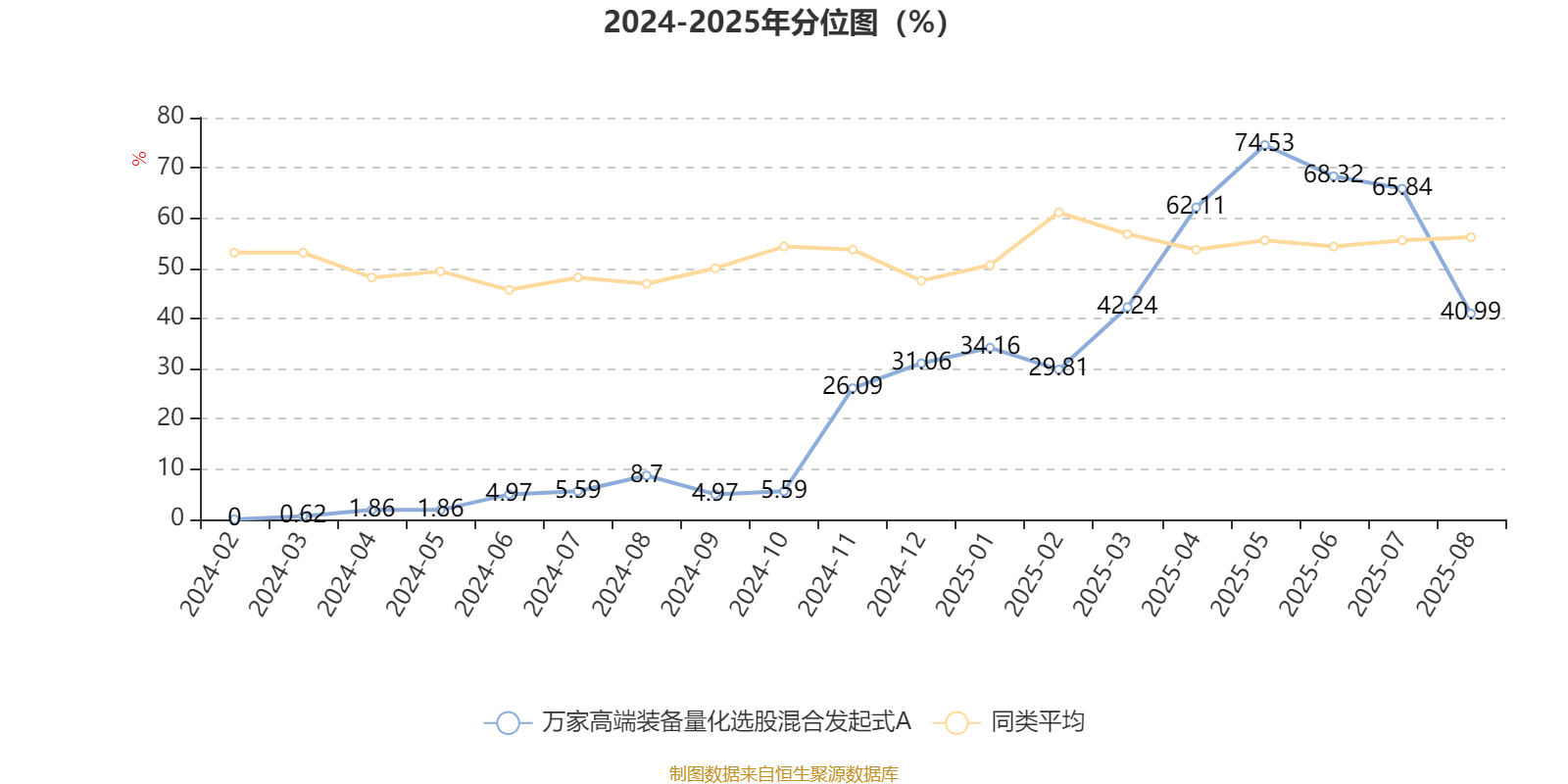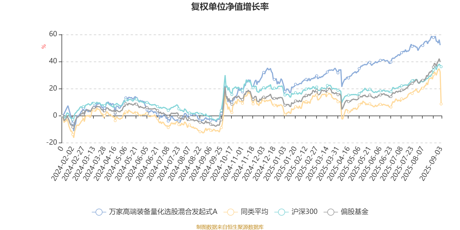 截至9月2日,万家高端装备量化选股混合发起式A近三个月复权单位净值增长率为9.30%,位于同类可比基金162/171;近半年复权单位净值增长率为19.50%,位于同类可比基金63/171;近一年复权单位净值增长率为56.27%,位于同类可比基金50/168。