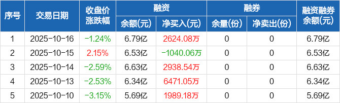 融资方面,当日融资买入1.94亿元,融资偿还1.68亿元,融资净买入2624.08万元。融券方面,融券卖出0份,融券偿还0份,融券余量0份,融券余额0元。融资融券余额合计6.79亿元。