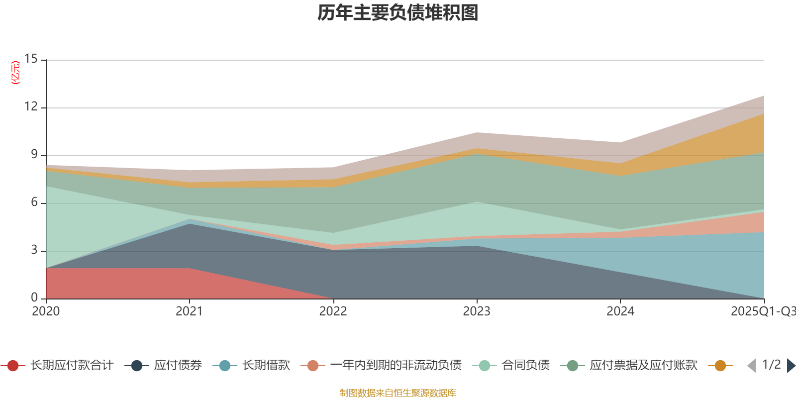 负债重大变化方面,截至2025年三季度末,公司应付债券较上年末减少100%,占公司总资产比重下降6.41个百分点;长期借款较上年末增加92.77%,占公司总资产比重上升5.04个百分点;短期借款较上年末增加203.38%,占公司总资产比重上升4.72个百分点;一年内到期的非流动负债较上年末增加230.61%,占公司总资产比重上升2.61个百分点。