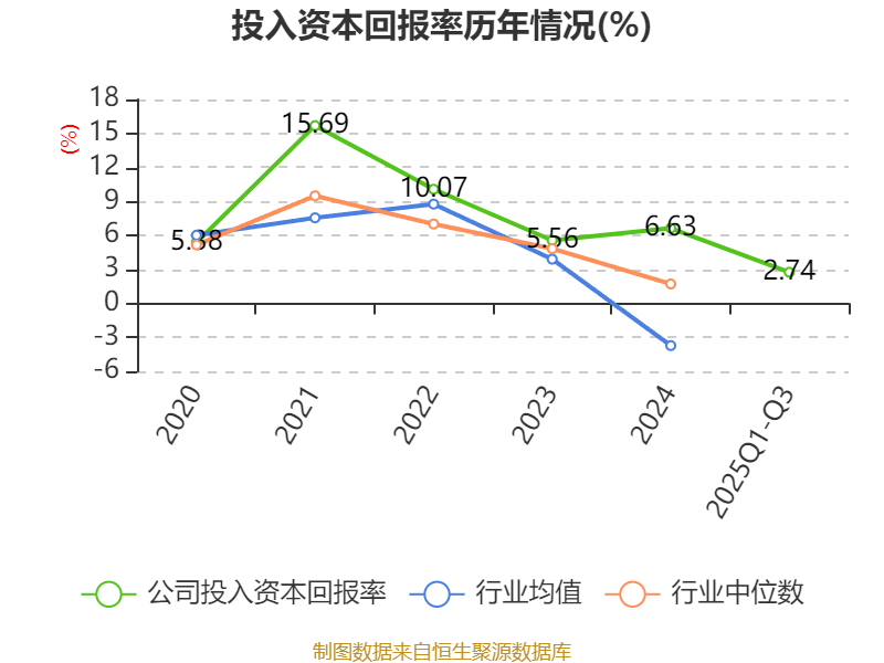盈利能力方面, 2025年前三季度公司加权平均净资产收益率为3.69%,同比下降4.96个百分点。公司2025年前三季度投入资本回报率为2.74%,较上年同期下降4.18个百分点。