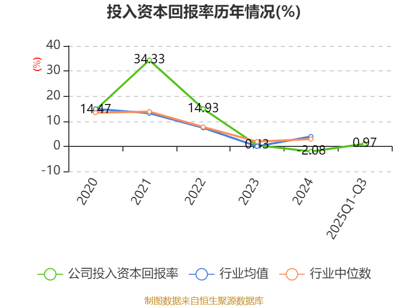 盈利能力方面, 2025年前三季度公司加权平均净资产收益率为1.09%,同比上升2.99个百分点。公司2025年前三季度投入资本回报率为0.97%,较上年同期上升2.78个百分点。