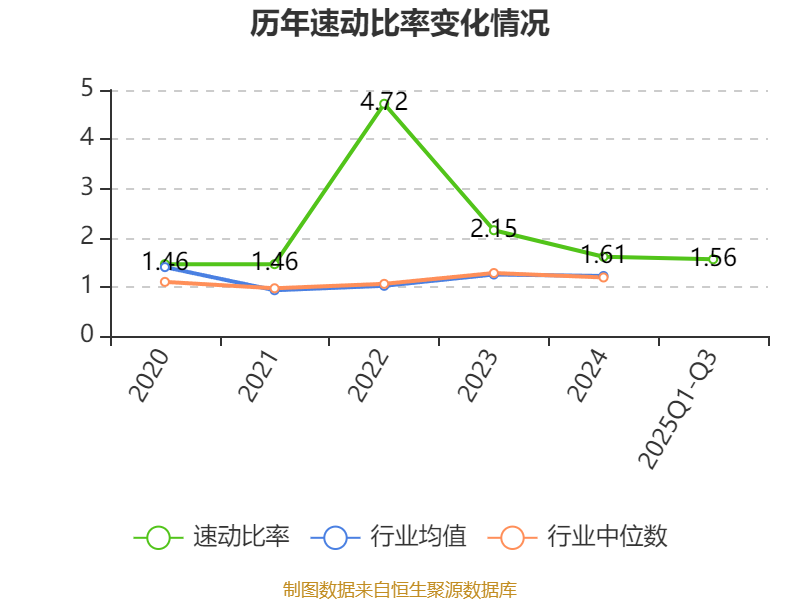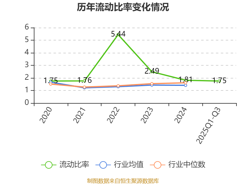 2025年前三季度,公司流动比率为1.75,速动比率为1.56。