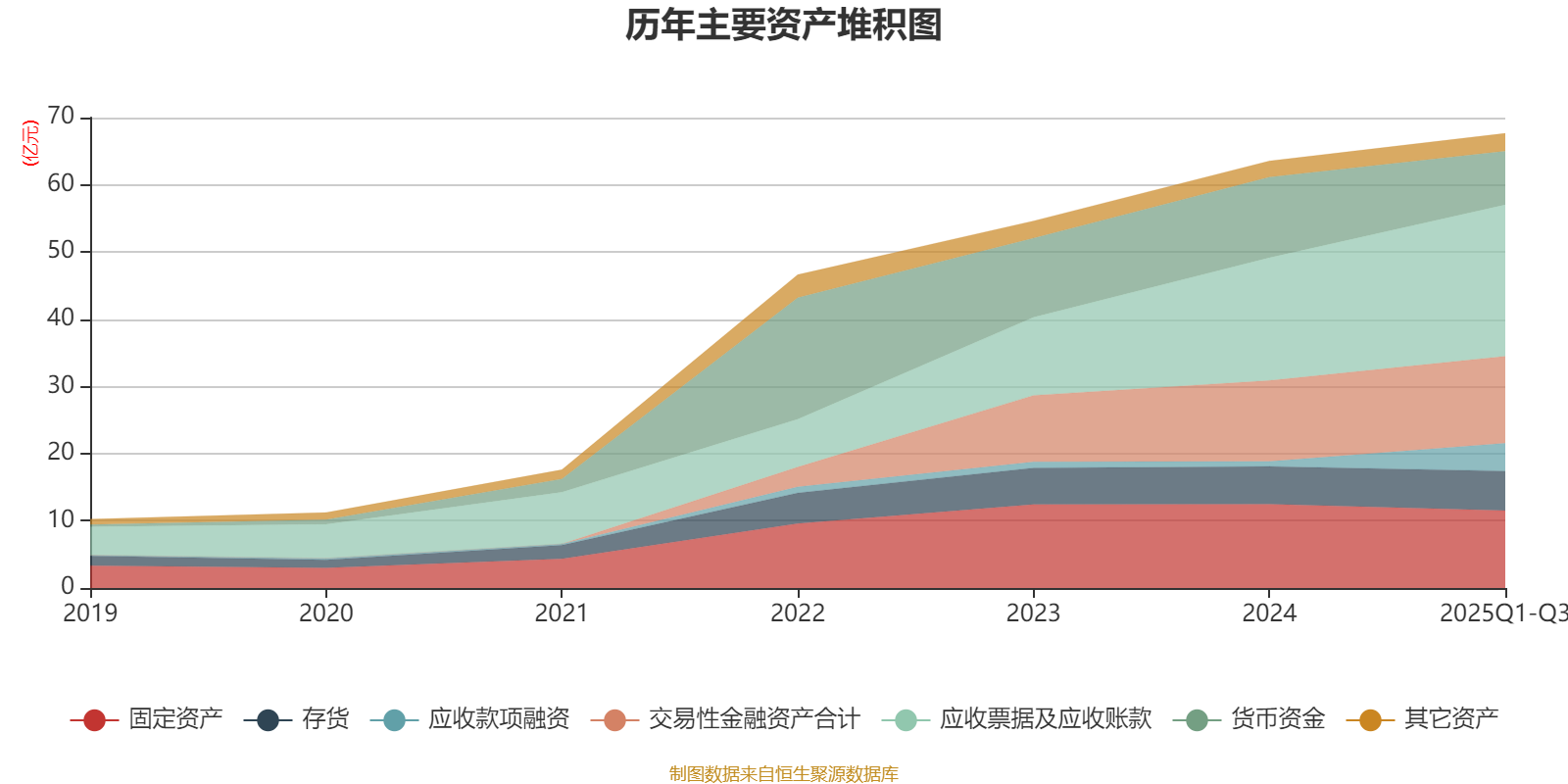 资产重大变化方面,截至2025年三季度末,公司货币资金较上年末减少33.45%,占公司总资产比重下降7.07个百分点;应收款项融资较上年末增加448.32%,占公司总资产比重上升4.95个百分点;应收票据及应收账款较上年末增加23.29%,占公司总资产比重上升4.55个百分点;固定资产较上年末减少7.82%,占公司总资产比重下降2.63个百分点。