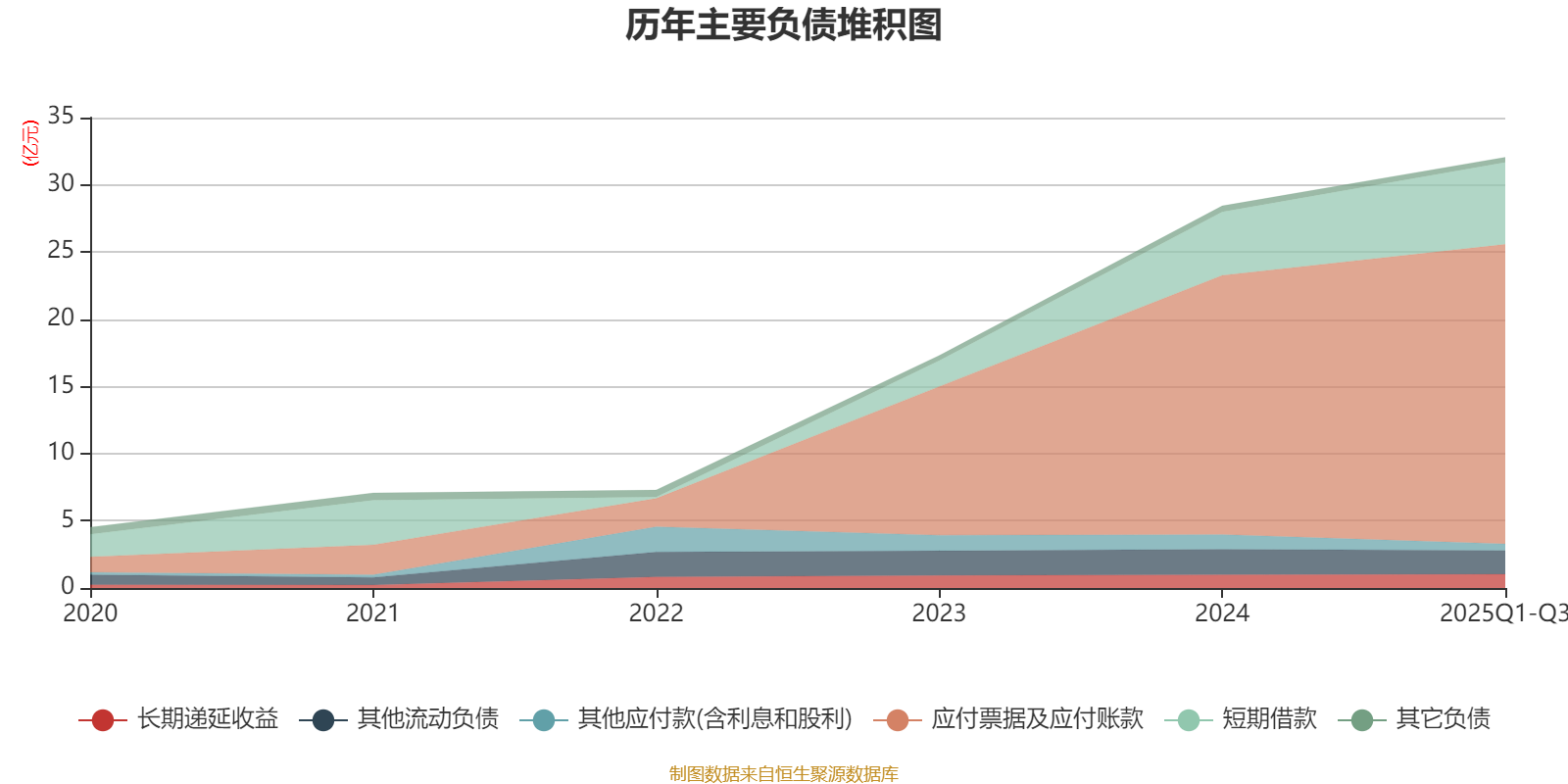 负债重大变化方面,截至2025年三季度末,公司应付票据及应付账款较上年末增加15.55%,占公司总资产比重上升2.59个百分点;短期借款较上年末增加29.13%,占公司总资产比重上升1.58个百分点;其他应付款(含利息和股利)较上年末减少54.54%,占公司总资产比重下降0.98个百分点;其他流动负债较上年末减少7.29%,占公司总资产比重下降0.39个百分点。