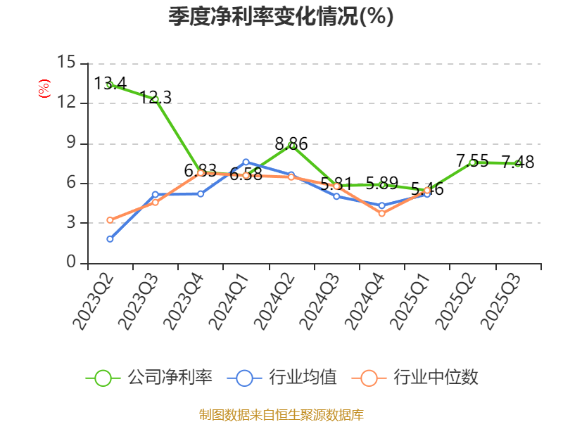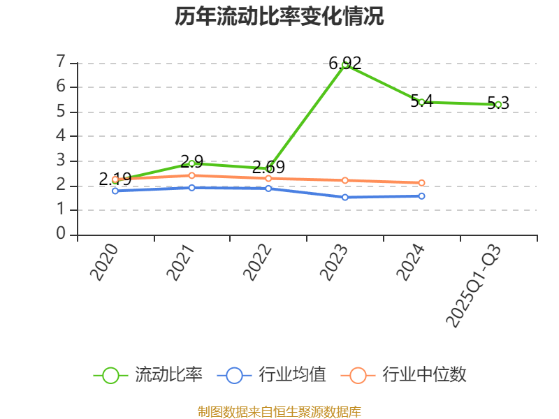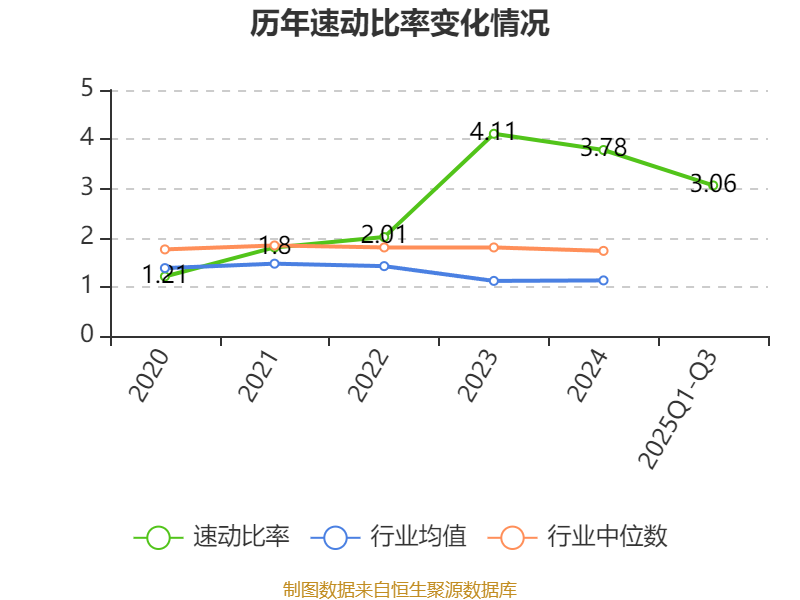 2025年前三季度,公司流动比率为5.3,速动比率为3.06。