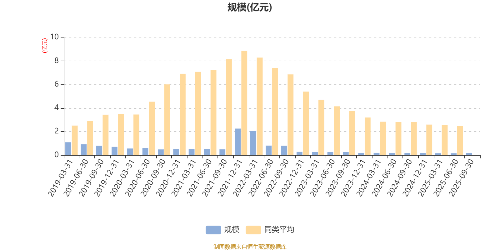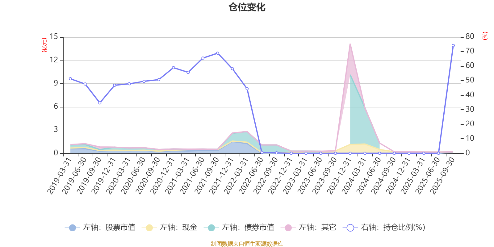据定期报告数据统计,近三年平均股票仓位为6.18%,同类平均为27.01%。2025年三季度末基金达到74.18%的最高仓位,2022年三季度末最低,为0.33%。