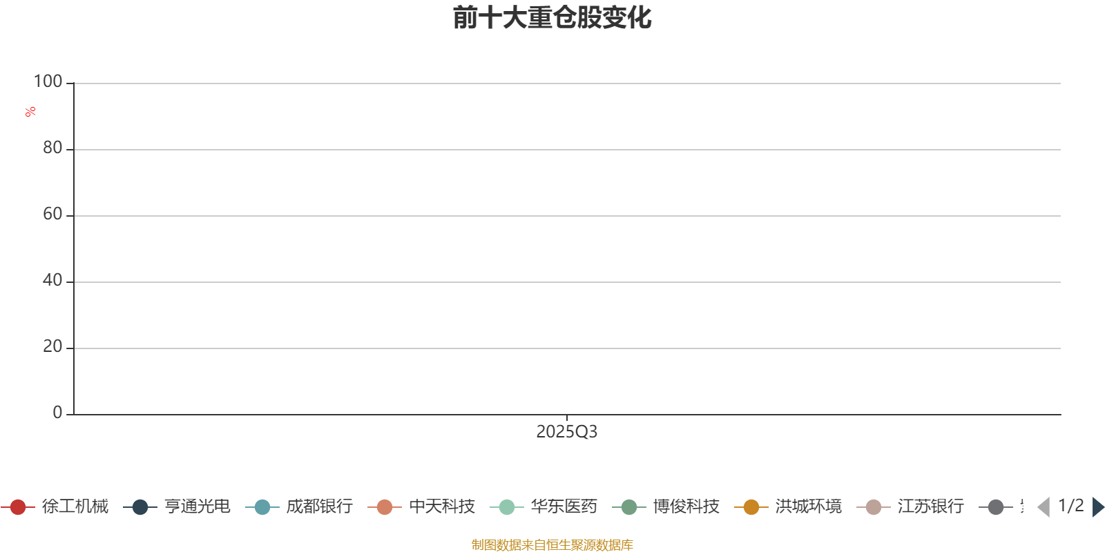 该基金持股集中度较高。截至2025年三季度末,基金十大重仓股分别是紫金矿业、徐工机械、江苏银行、成都银行、亨通光电、中天科技、海信视像、博俊科技、洪城环境、华东医药。
