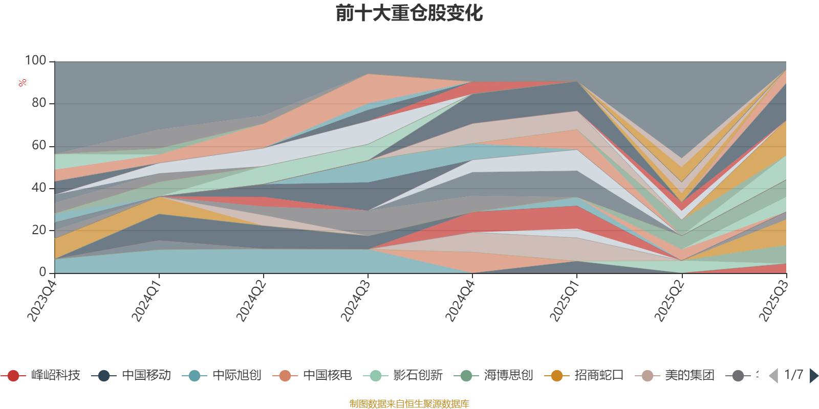 该基金持股集中度较高。截至2025年三季度末,基金十大重仓股分别是长江电力、保利发展、招商蛇口、芒果超媒、海博思创、科泰电源、芯原股份、滨江集团、峰岹科技、华策影视。