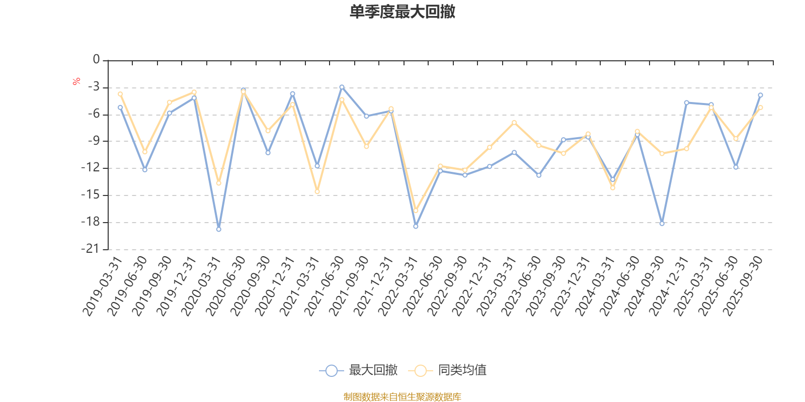 截至10月24日,基金近三年最大回撤为36.93%,同类可比基金排名796/1283。单季度最大回撤出现在2020年一季度,为18.76%。
