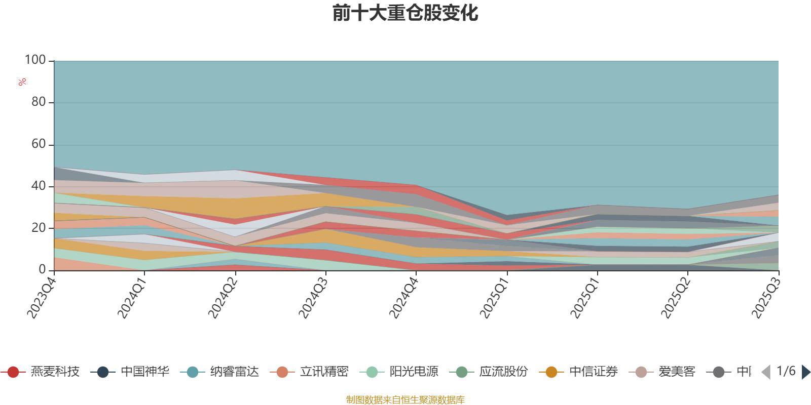 截至2025年三季度末,基金十大重仓股分别是新强联、大金重工、中际旭创、新易盛、天孚通信、应流股份、尚太科技、徐工机械、安集科技、中芯国际。