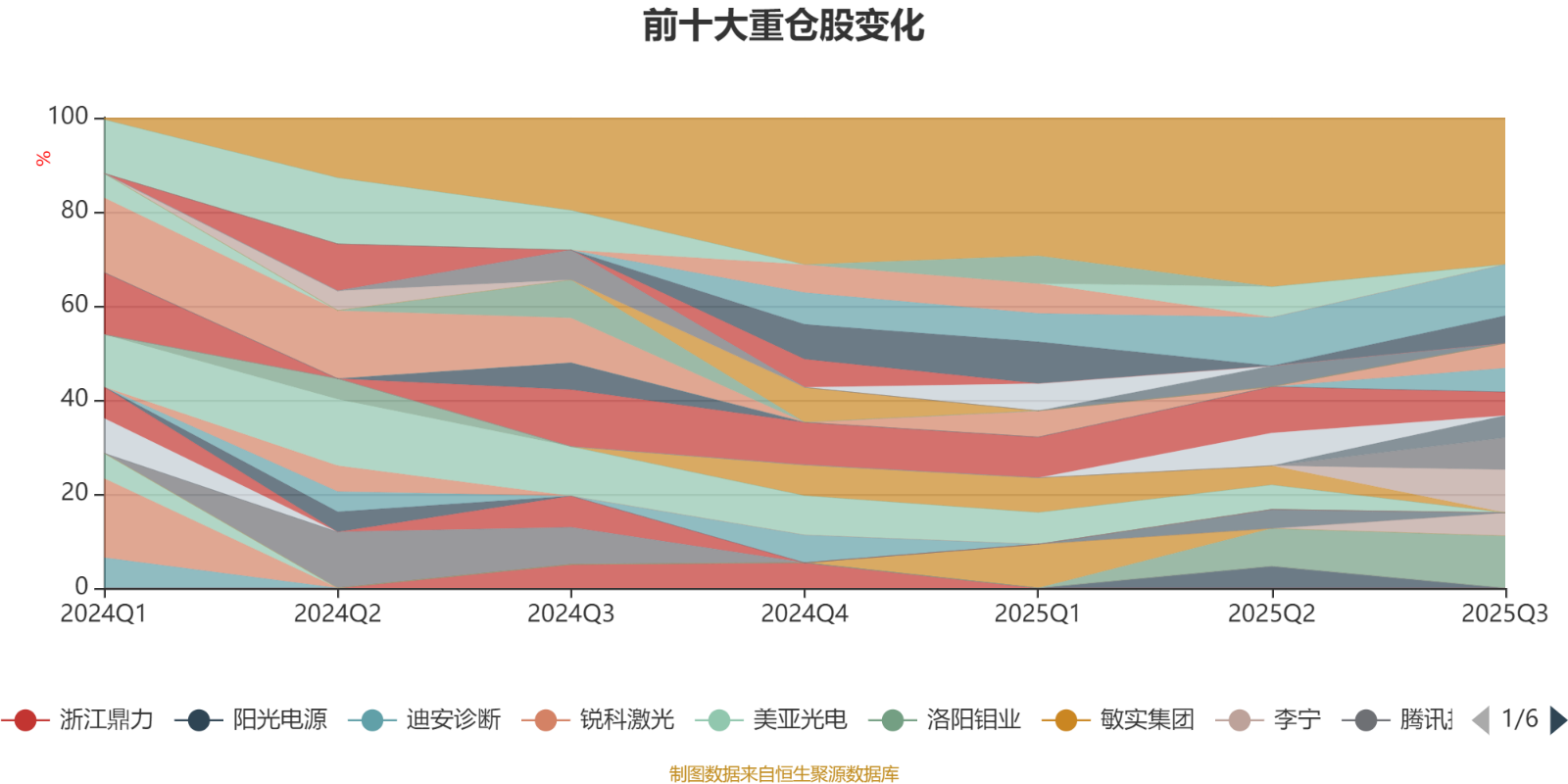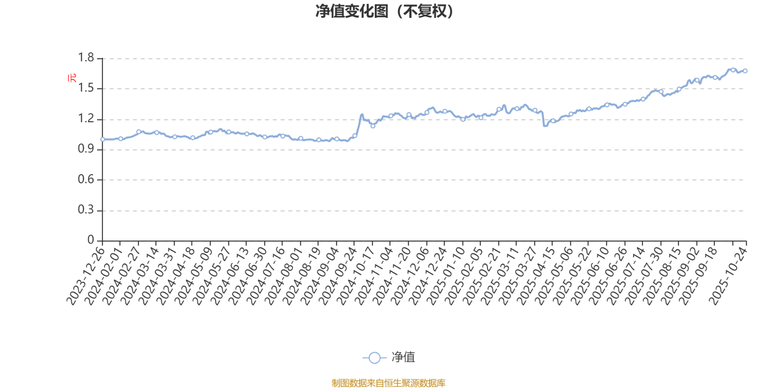 该基金持股集中度较高。截至2025年三季度末,基金十大重仓股分别是洛阳钼业、江山股份、亨通光电、兴发集团、华菱钢铁、宝武镁业、赛轮轮胎、理想汽车-W、李宁、中天科技。
