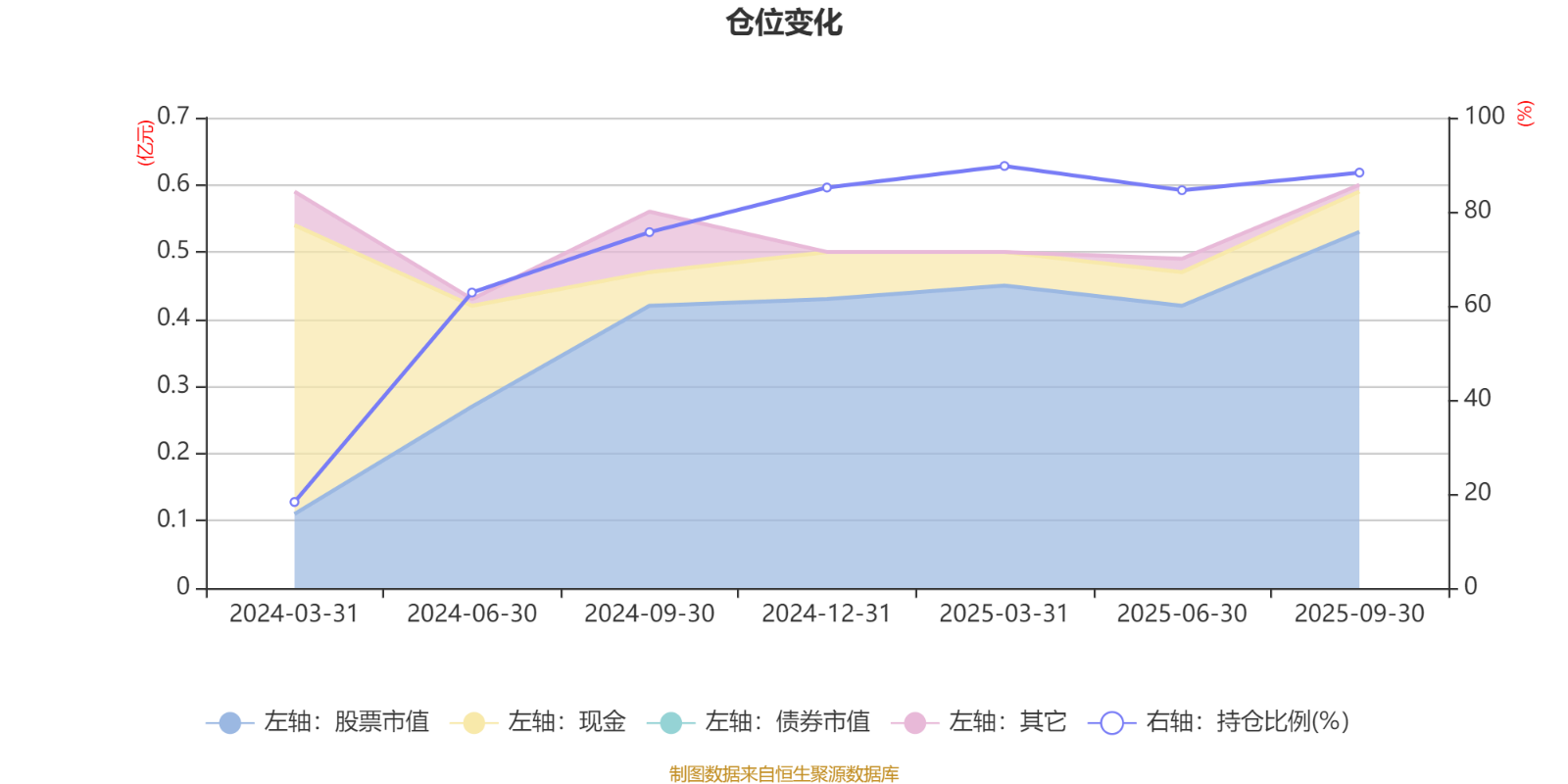据定期报告数据统计,成立以来平均股票仓位为72.07%,同类平均为83.44%。2025年一季度末基金达到89.72%的最高仓位,2024年一季度末最低,为18.28%。