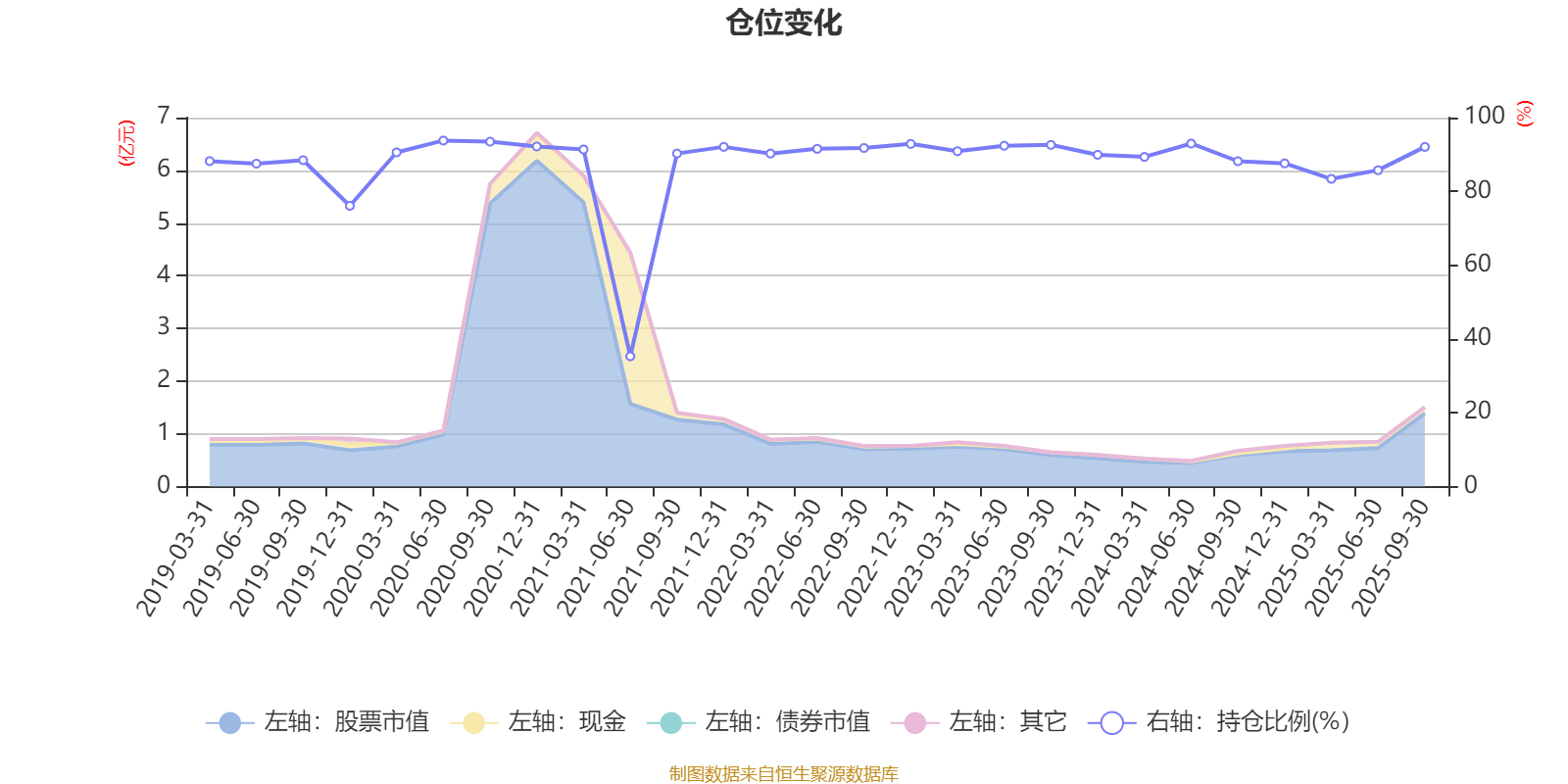 据定期报告数据统计,近三年平均股票仓位为89.83%,同类平均为88.12%。2020年上半年末基金达到93.78%的最高仓位,2021年上半年末最低,为35.31%。