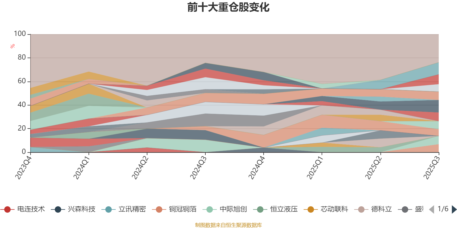 该基金持股集中度较高。截至2025年三季度末,基金十大重仓股分别是浙江荣泰、华通线缆、新易盛、江淮汽车、胜宏科技、中际旭创、宏和科技、铜冠铜箔、天孚通信、麦格米特。
