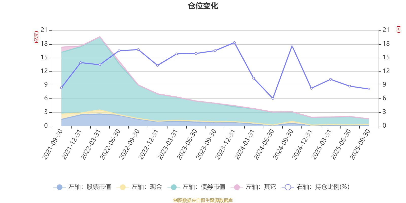 据定期报告数据统计,近三年平均股票仓位为12.47%,同类平均为19.03%。2023年末基金达到18.34%的最高仓位,2024年上半年末最低,为6.06%。