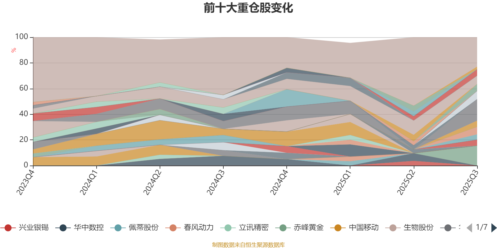 截至2025年三季度末,基金重仓股分别是山金国际、赤峰黄金、申洲国际、赛轮轮胎、明阳电气、中国南方航空股份、名创优品、兔宝宝、中国国航、鼎阳科技、南方航空。