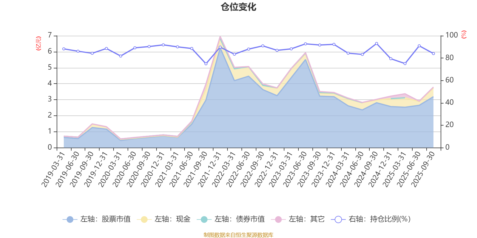 据定期报告数据统计,近三年平均股票仓位为86.85%,同类平均为88.26%。2024年三季度末基金达到93.03%的最高仓位,2021年三季度末最低,为74.94%。
