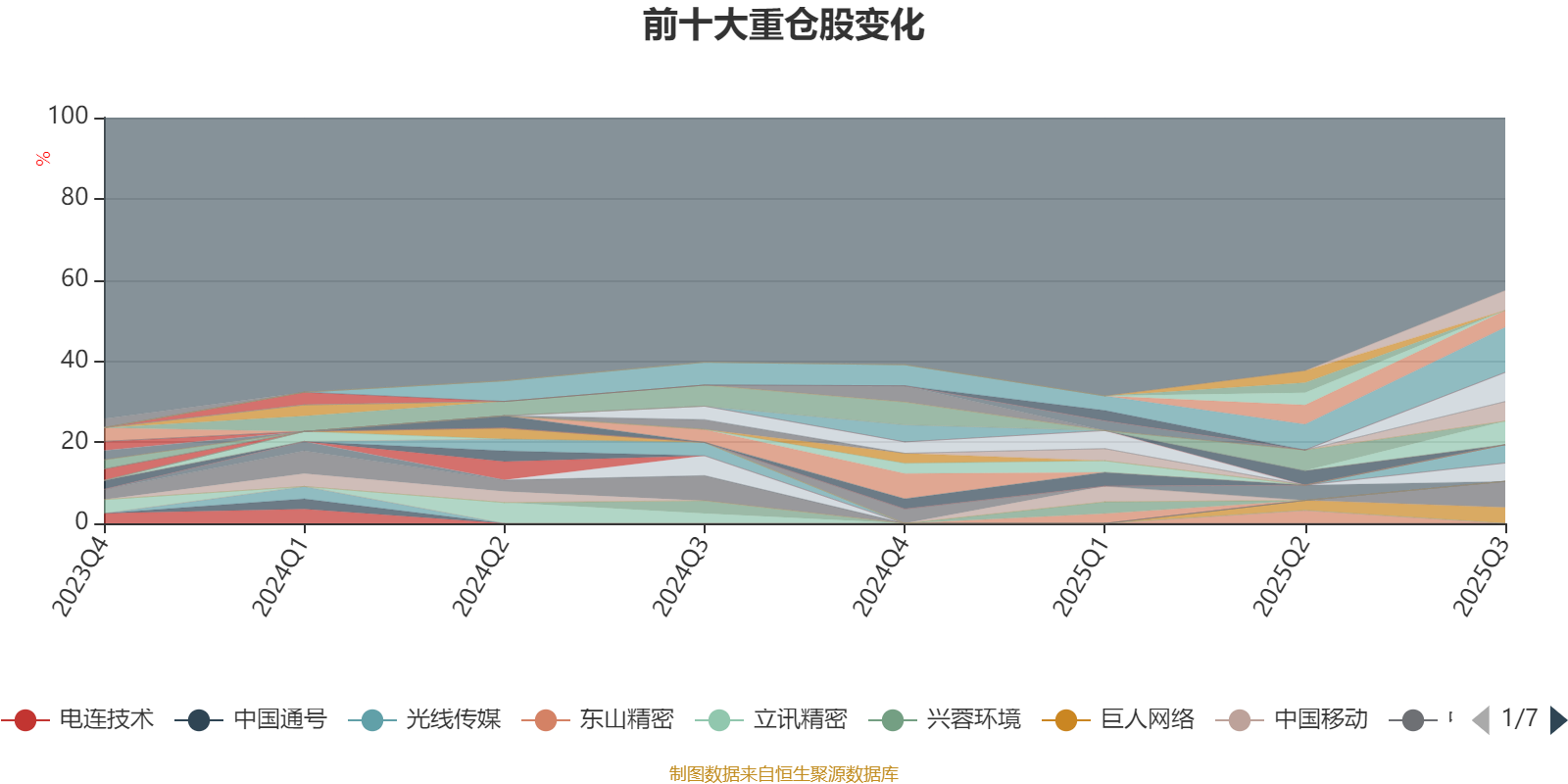 截至2025年三季度末,基金十大重仓股分别是新易盛、工业富联、中际旭创、英维克、兆易创新、中科曙光、科华数据、生益科技、沃尔核材、巨人网络。