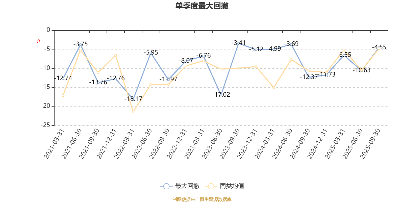 截至10月24日,基金近三年最大回撤为18.75%,同类可比基金排名8/56。单季度最大回撤出现在2022年一季度,为18.17%。