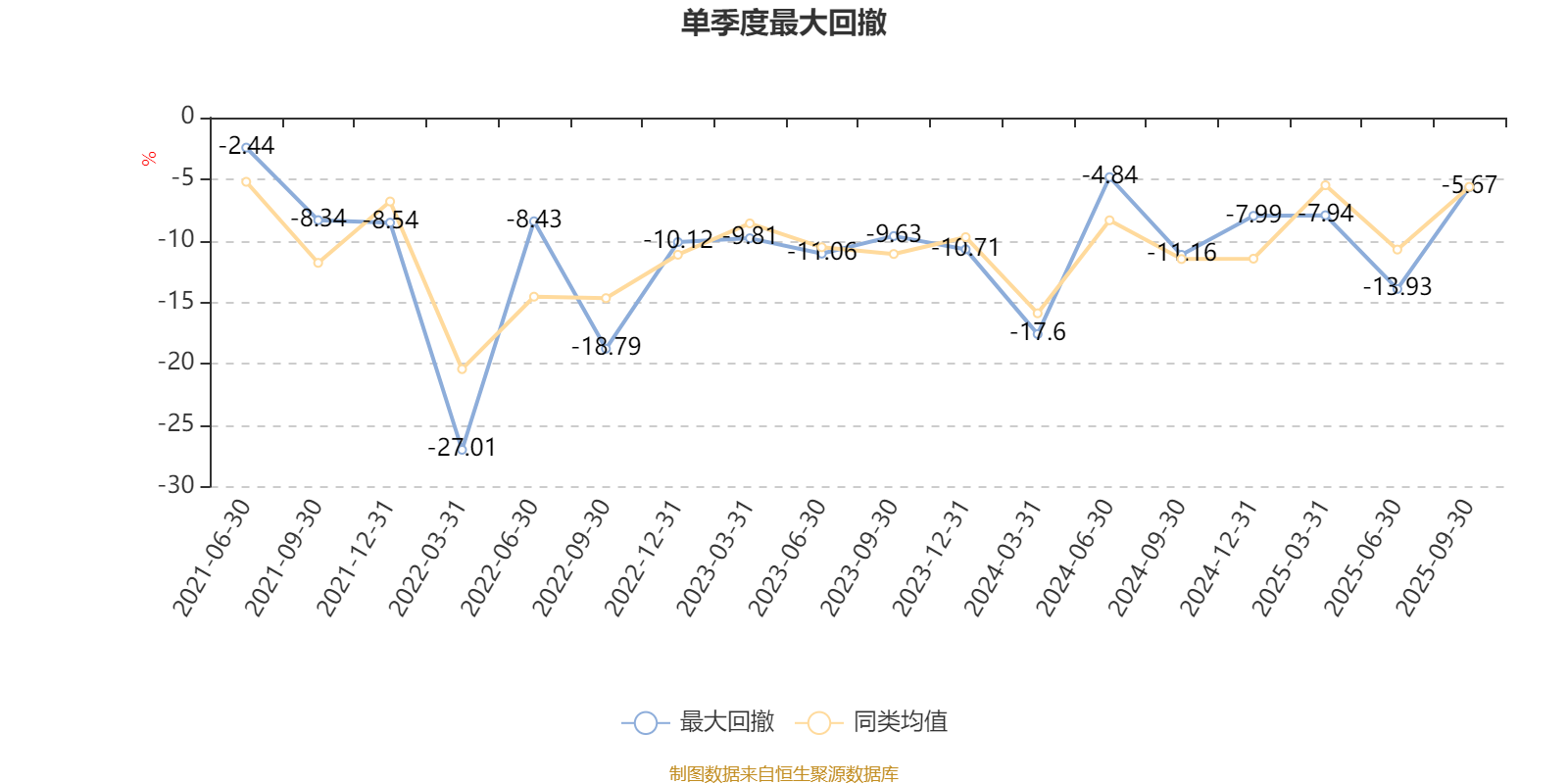截至10月24日,基金近三年最大回撤为34.06%,同类可比基金排名69/156。单季度最大回撤出现在2022年一季度,为27.01%。