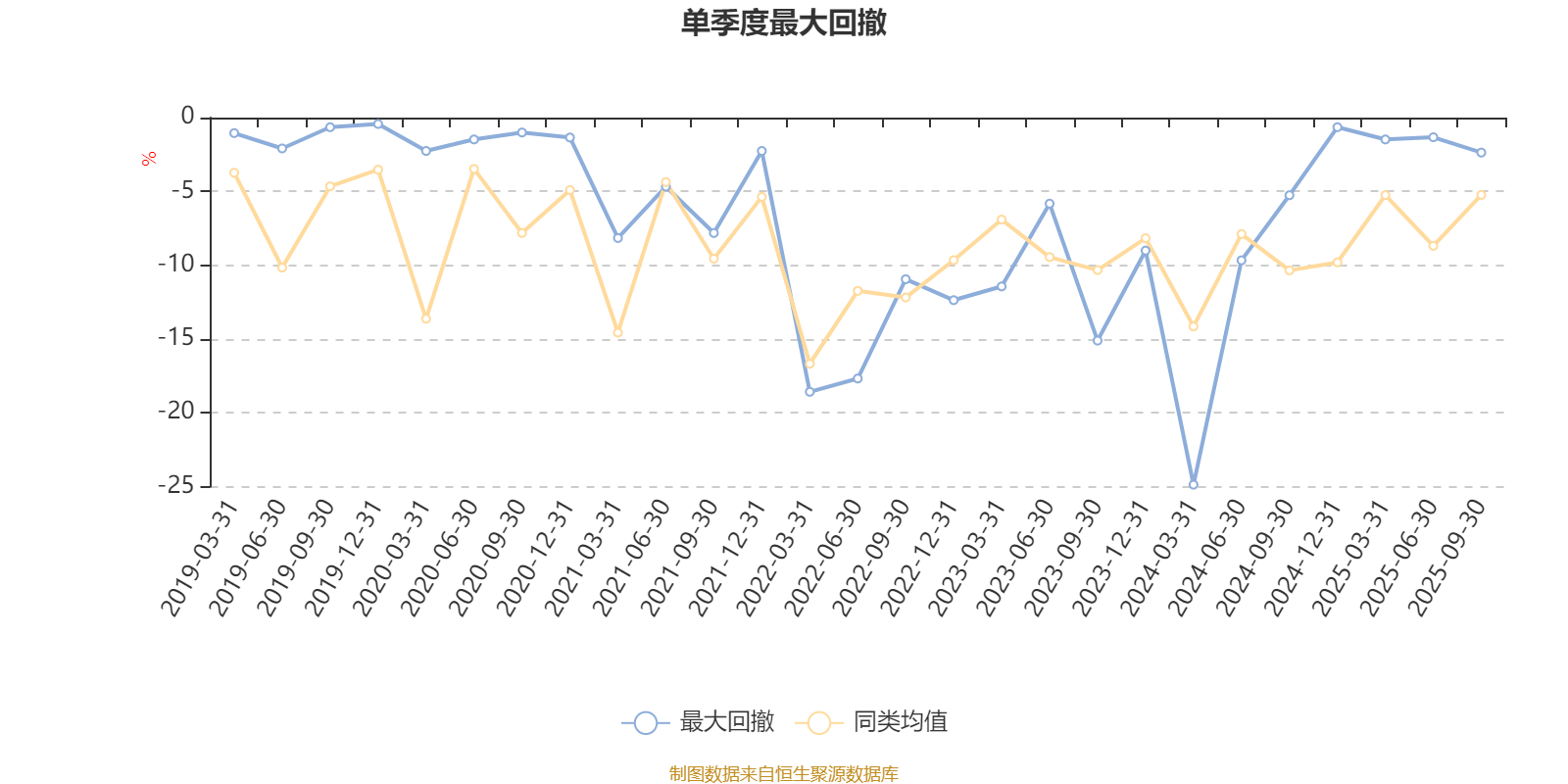 截至10月24日,基金近三年最大回撤为39.83%,同类可比基金排名906/1283。单季度最大回撤出现在2024年一季度,为24.87%。