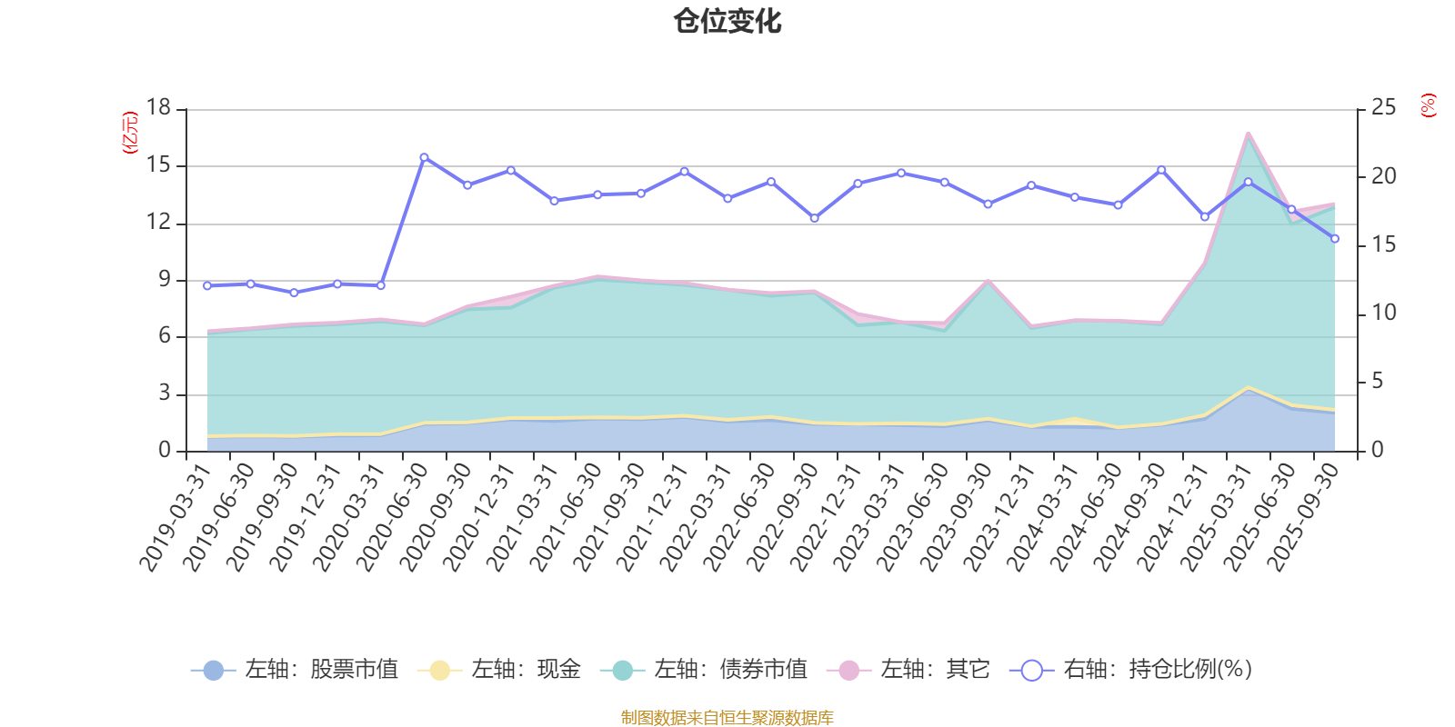 据定期报告数据统计,近三年平均股票仓位为18.68%,同类平均为72.16%。2020年上半年末基金达到21.47%的最高仓位,2019年三季度末最低,为11.58%。
