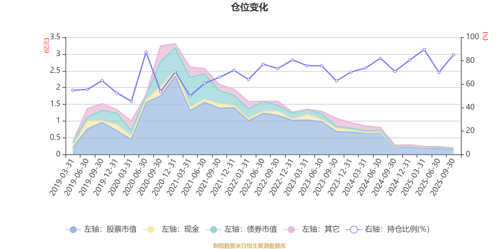 据定期报告数据统计,近三年平均股票仓位为76.5%,同类平均为72.16%。2025年一季度末基金达到89.54%的最高仓位,2020年一季度末最低,为45.4%。