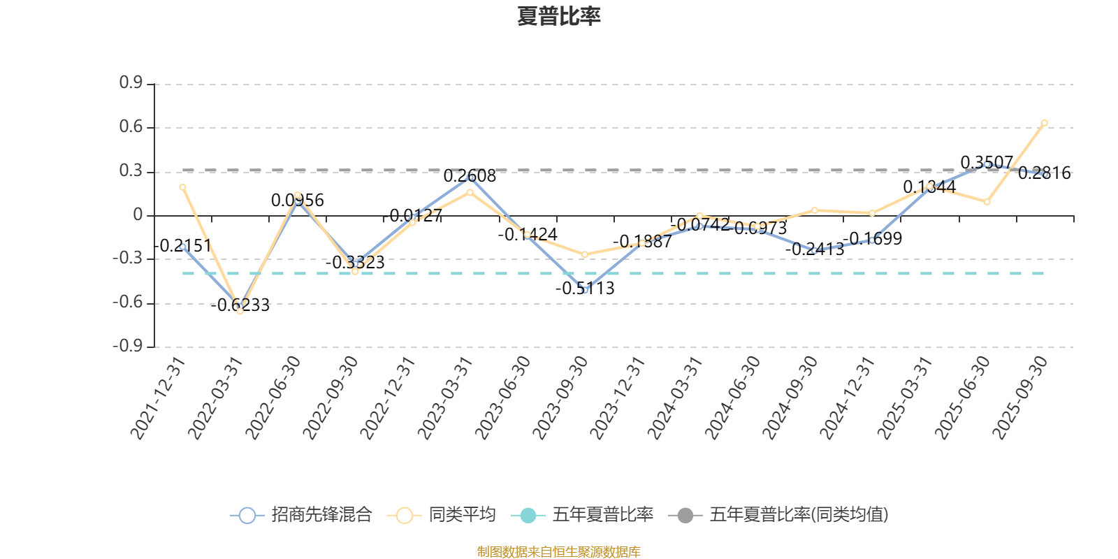 截至9月30日,基金近三年夏普比率为0.0328,位于同类可比基金1153/1285。