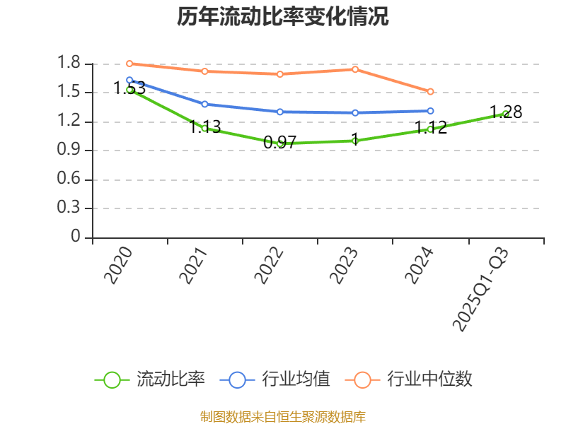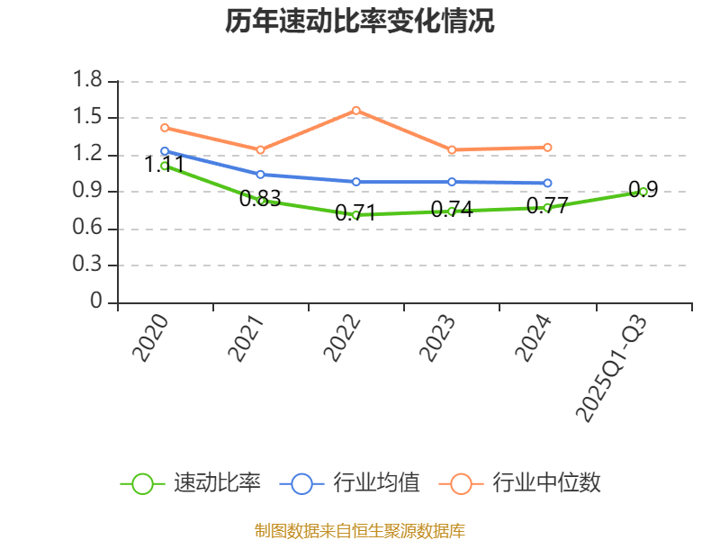 2025年前三季度,公司流动比率为1.28,速动比率为0.9。