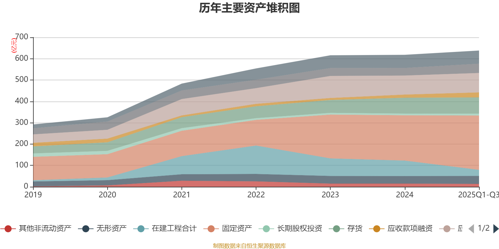 资产重大变化方面,截至2025年三季度末,公司在建工程合计较上年末减少60.86%,占公司总资产比重下降7.29个百分点;固定资产较上年末增加19.84%,占公司总资产比重上升5.53个百分点;应收款项融资较上年末增加56.23%,占公司总资产比重上升1.24个百分点;货币资金较上年末增加23.56%,占公司总资产比重上升1.13个百分点。