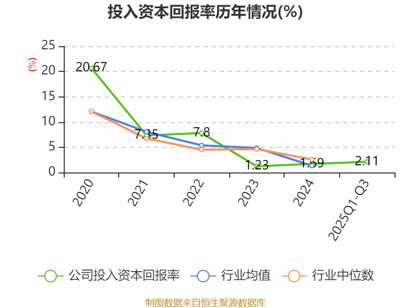 盈利能力方面, 2025年前三季度公司加权平均净资产收益率为5.57%,同比上升1.53个百分点。公司2025年前三季度投入资本回报率为2.11%,较上年同期上升0.63个百分点。