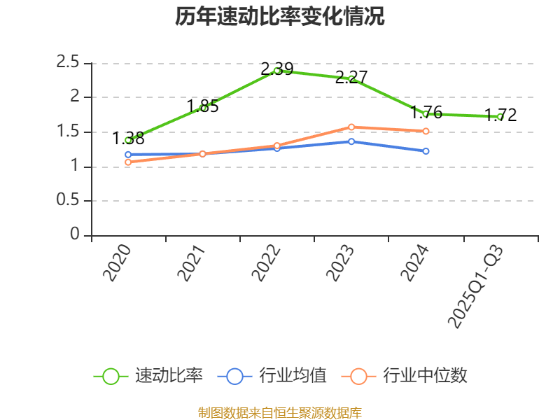 2025年前三季度,公司流动比率为1.89,速动比率为1.72。