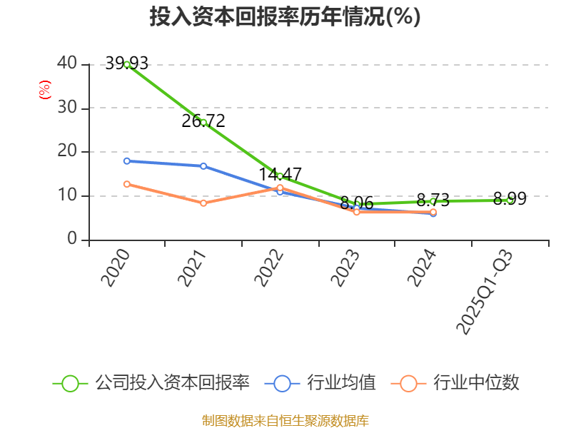 盈利能力方面, 2025年前三季度公司加权平均净资产收益率为10.53%,同比上升3.26个百分点。公司2025年前三季度投入资本回报率为8.99%,较上年同期上升2.99个百分点。
