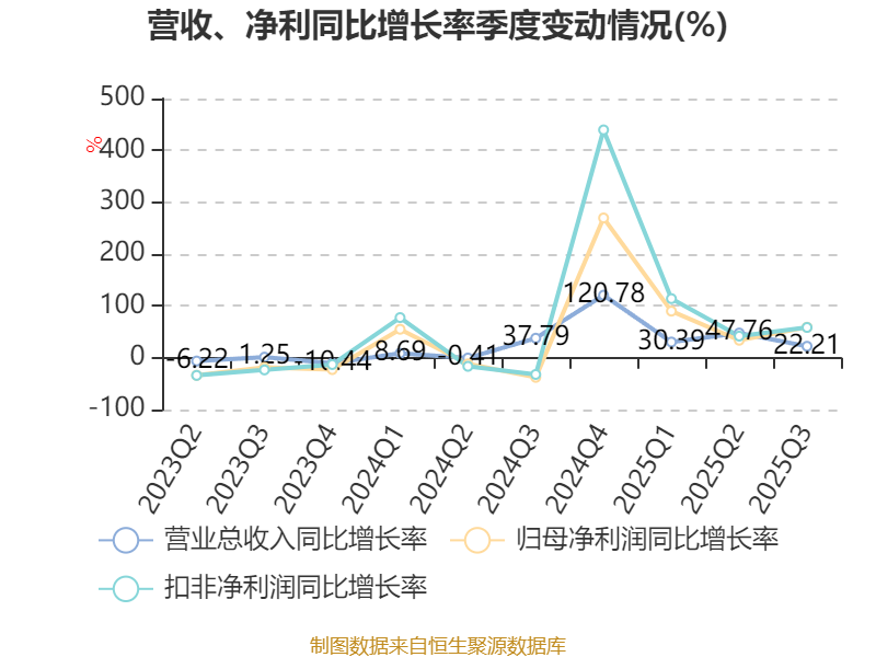资产重大变化方面,截至2025年三季度末,公司固定资产较上年末增加87.23%,占公司总资产比重上升6.23个百分点;预付款项较上年末增加137.24%,占公司总资产比重上升5.48个百分点;在建工程合计较上年末减少64.7%,占公司总资产比重下降4.91个百分点;应收票据及应收账款较上年末减少8.98%,占公司总资产比重下降3.23个百分点。