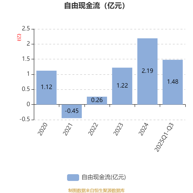 2025年前三季度,公司经营活动现金流净额为9795.5万元,同比增长18.31%;筹资活动现金流净额-1234.68万元,同比增加4670.41万元;投资活动现金流净额607.73万元,上年同期为6940.59万元。