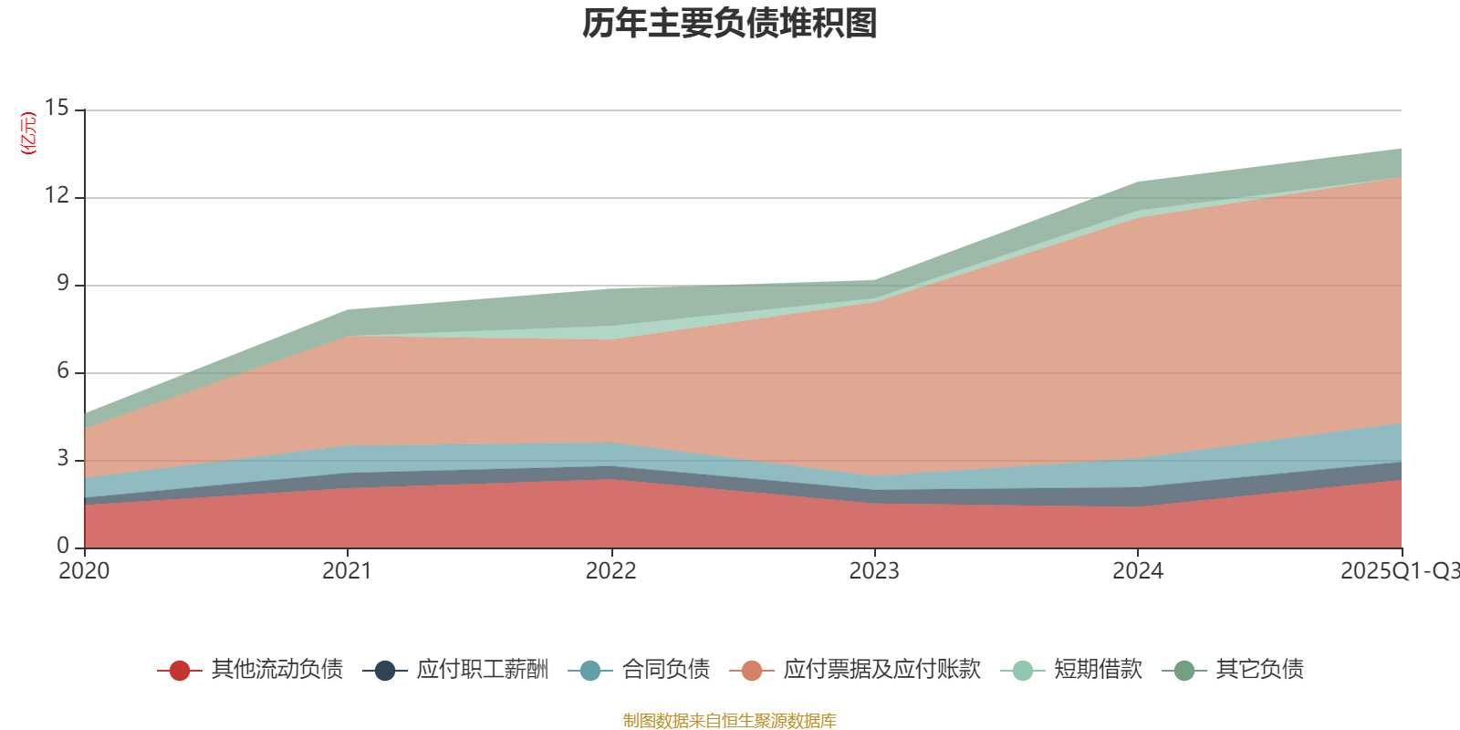 负债重大变化方面,截至2025年三季度末,公司应付票据及应付账款较上年末增加2.19%,占公司总资产比重下降2.06个百分点;其他流动负债较上年末增加65.78%,占公司总资产比重上升2.04个百分点;短期借款较上年末减少100%,占公司总资产比重下降0.76个百分点;合同负债较上年末增加34.84%,占公司总资产比重上升0.63个百分点。