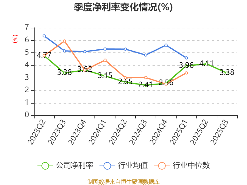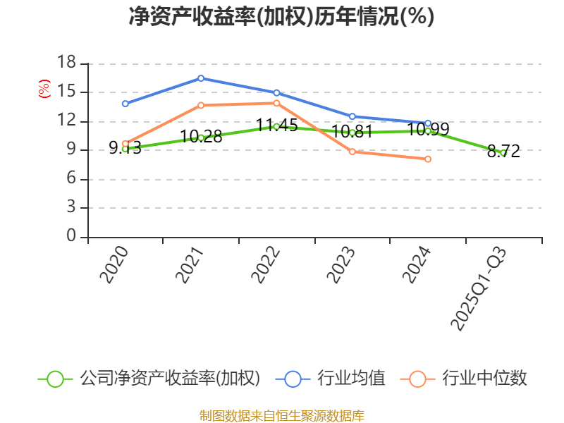 盈利能力方面, 2025年前三季度公司加权平均净资产收益率为8.72%,同比下降0.01个百分点。公司2025年前三季度投入资本回报率为8.56%,较上年同期下降0.03个百分点。