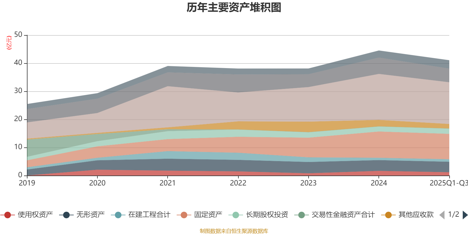 资产重大变化方面,截至2025年三季度末,公司其他应收款(含利息和股利)较上年末减少30.26%,占公司总资产比重下降1.27个百分点;货币资金较上年末减少16.51%,占公司总资产比重下降1.24个百分点;固定资产较上年末减少3.11%,占公司总资产比重上升1.06个百分点;长期应收款较上年末增加1693.25%,占公司总资产比重上升1.01个百分点。