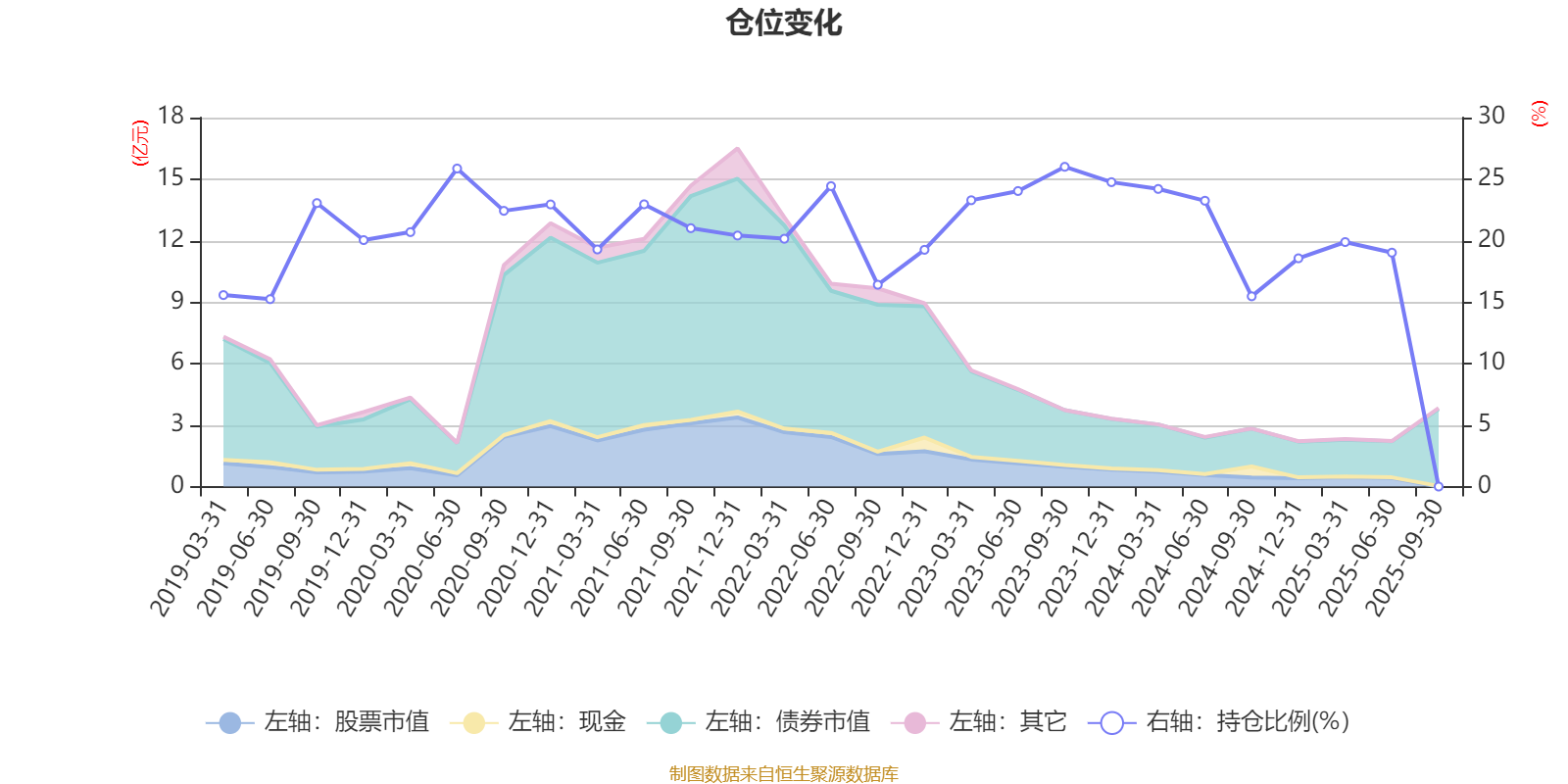 据定期报告数据统计,近三年平均股票仓位为19.81%,同类平均为19.02%。2023年三季度末基金达到26%的最高仓位,2019年上半年末最低,为15.24%。