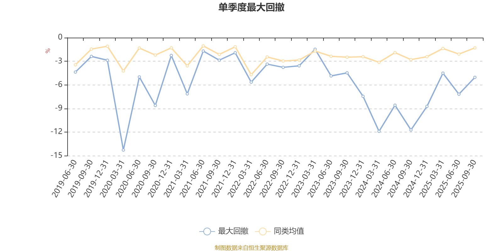 截至10月27日,基金近三年最大回撤为22.6%,同类可比基金排名523/535。单季度最大回撤出现在2020年一季度,为14.27%。