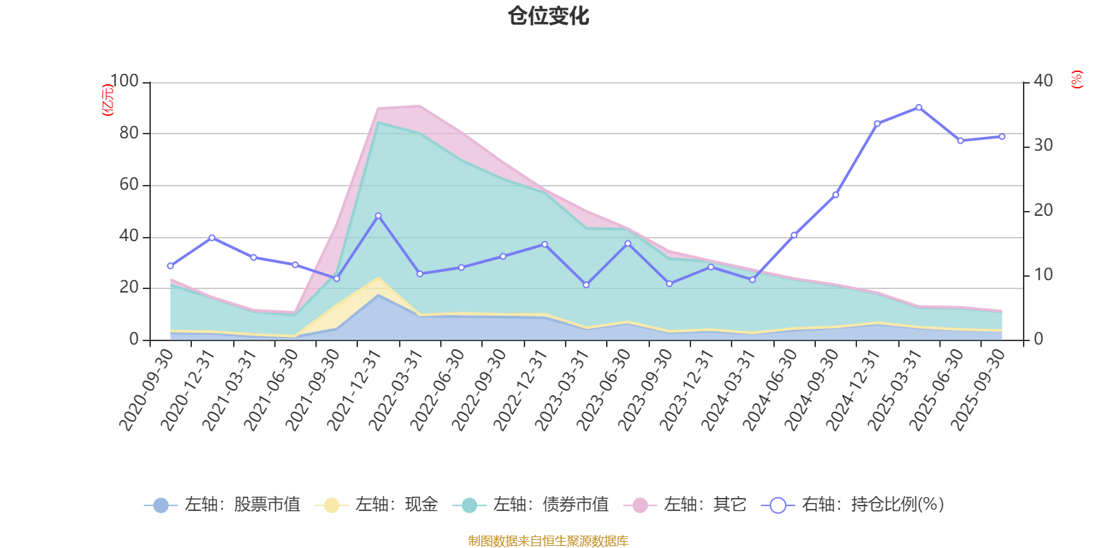 据定期报告数据统计,近三年平均股票仓位为19.9%,同类平均为19.03%。2025年一季度末基金达到36.09%的最高仓位,2023年一季度末最低,为8.56%。
