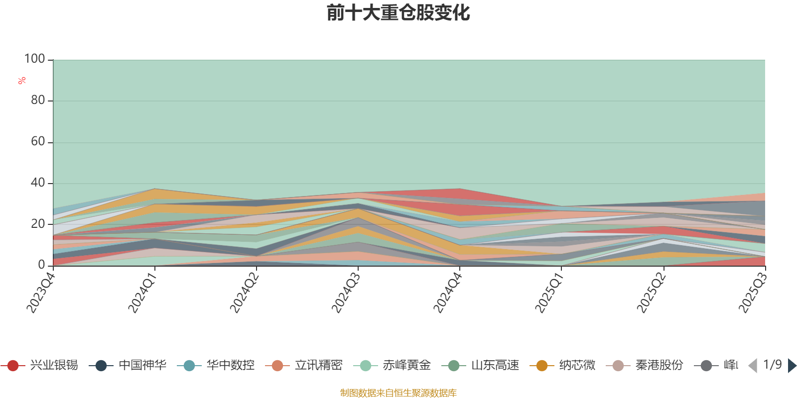 截至2025年三季度末,基金十大重仓股分别是华友钴业、兴业银锡、中金黄金、兆易创新、芯原股份、宁德时代、金风科技、中芯国际、博源化工、恺英网络。