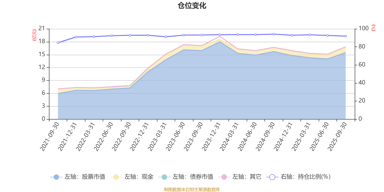 据定期报告数据统计,近三年平均股票仓位为92.97%,同类平均为86.7%。2024年三季度末基金达到94.06%的最高仓位,2021年三季度末最低,为84.59%。