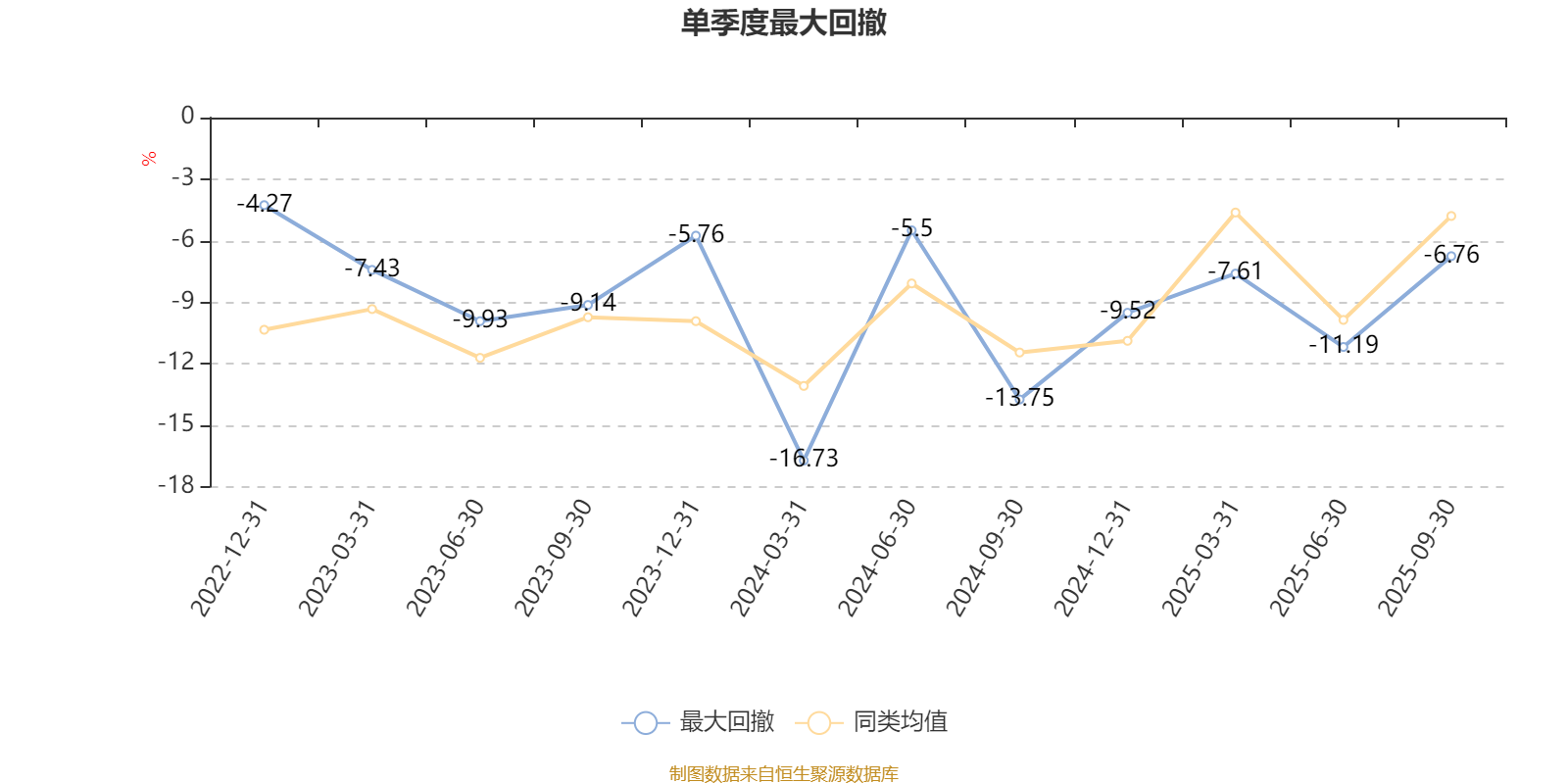 截至10月27日,基金近三年最大回撤为32.9%,同类可比基金排名10/20。单季度最大回撤出现在2024年一季度,为16.73%。
