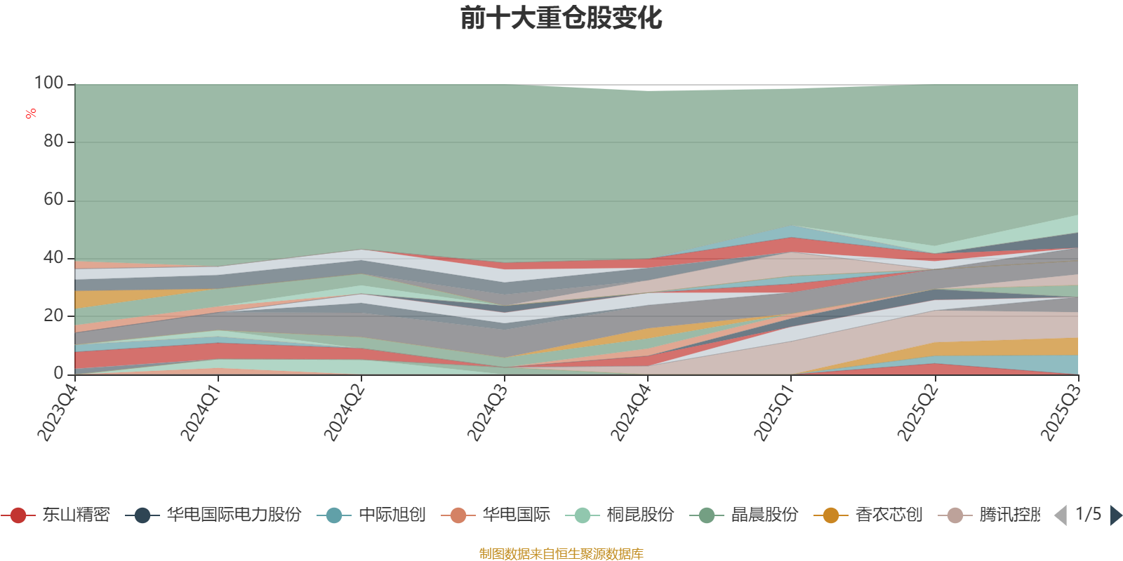 截至2025年三季度末,基金十大重仓股分别是腾讯控股、中际旭创、明阳智能、香农芯创、工业富联、ST华通、纳思达、沪电股份、深南电路、长城汽车。