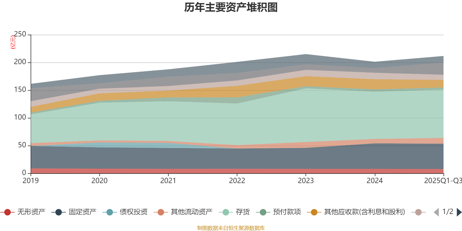 资产重大变化方面,截至2025年三季度末,公司货币资金较上年末增加166.32%,占公司总资产比重上升6.38个百分点;其他应收款(含利息和股利)较上年末减少24.78%,占公司总资产比重下降2.59个百分点;应收票据及应收账款较上年末减少21.28%,占公司总资产比重下降1.46个百分点;存货较上年末增加1.9%,占公司总资产比重下降1.31个百分点。