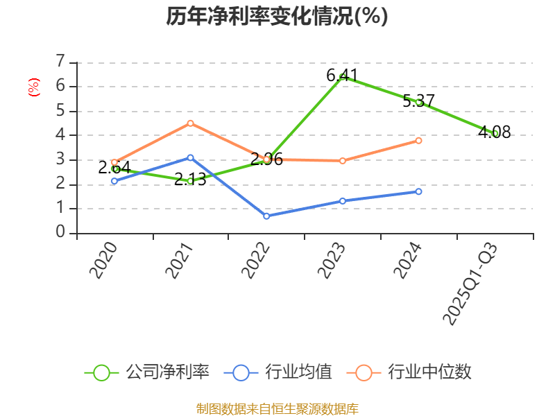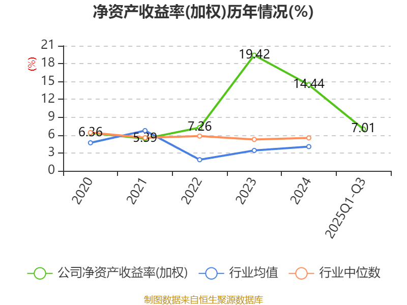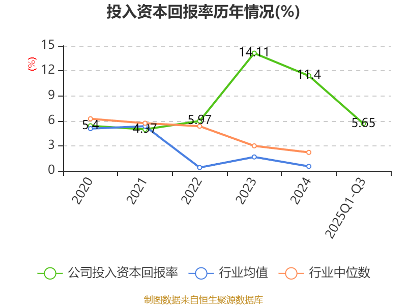盈利能力方面, 2025年前三季度公司加权平均净资产收益率为7.01%,同比下降3.09个百分点。公司2025年前三季度投入资本回报率为5.65%,较上年同期下降2.43个百分点。