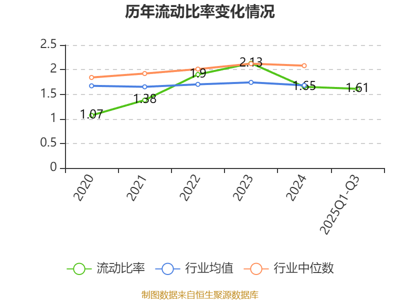 2025年前三季度,公司流动比率为1.61,速动比率为1.25。
