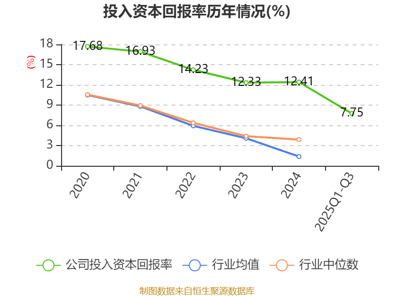 盈利能力方面, 2025年前三季度公司加权平均净资产收益率为9.9%,同比上升0.05个百分点。公司2025年前三季度投入资本回报率为7.75%,较上年同期下降0.33个百分点。